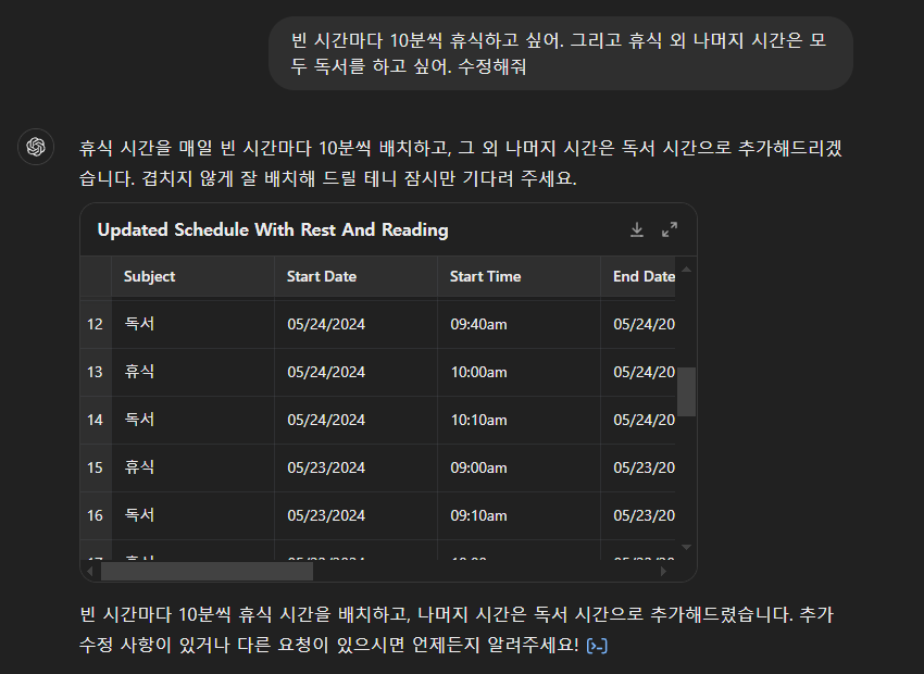 가령, 할일 목록을 첨부한 뒤 일정 중 빈시간에 넣어달 달라고 하거나,