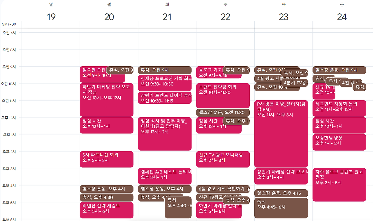 타임 블로킹은 캘린더를 보면서 무엇을 해야 하는지 그걸 어떤 시간에 배정해야 하는 지 고민하는 데 많은 시간을 뺏길 수 있기 때문에 실천하기 어렵다는 게 단점이 있다.