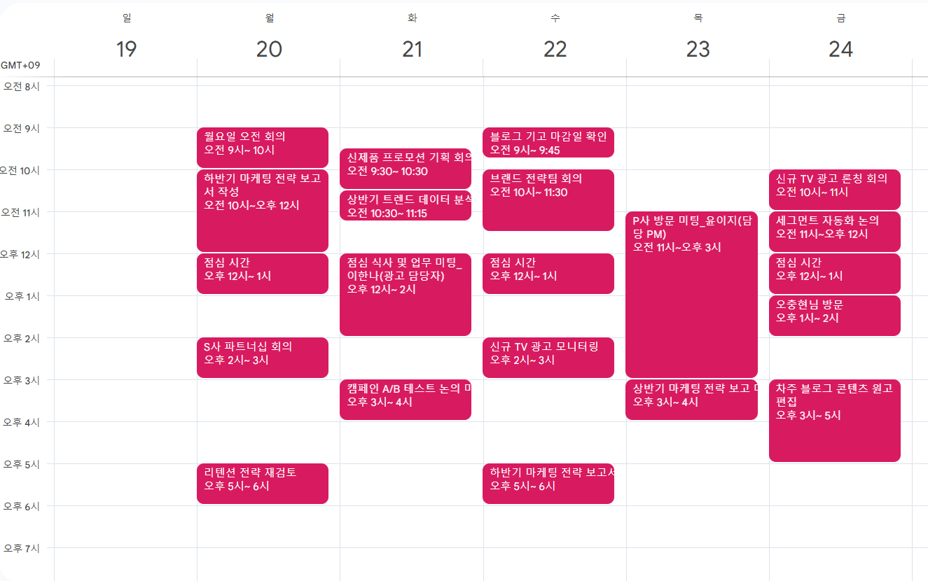 오른쪽은 GPT를 이용해서 '타임 블로킹'을 한 모습.